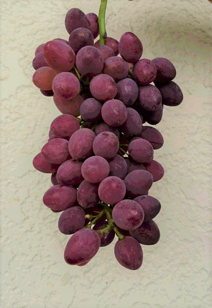 皮ごと食べられ種無しの赤いぶどう。シャキシャキしています。 |